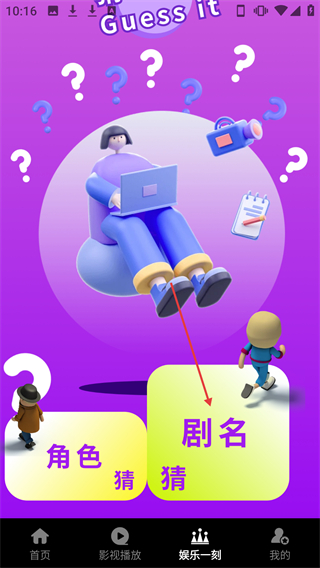 2、于娱乐一刻页面,点击【剧名】选项,便能进入看图猜电视剧的关卡选择页面。