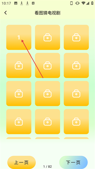 3、于关卡选择页面,点击第1关所对应的按钮,就能进入该关卡的看图猜剧答题页面。