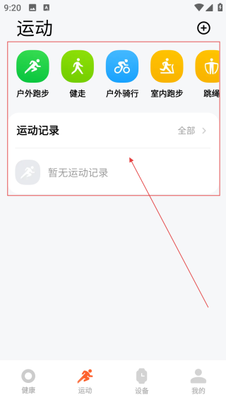 2. 进入运动页面后,能够选择诸如【户外跑步】之类的项目,进而查看完整的运动记录。