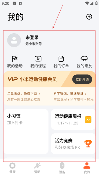 4、点击进入“我的页面”,在这里你能够看到【我的活动】等功能。若开通会员,还能解锁更多运动健康相关服务。