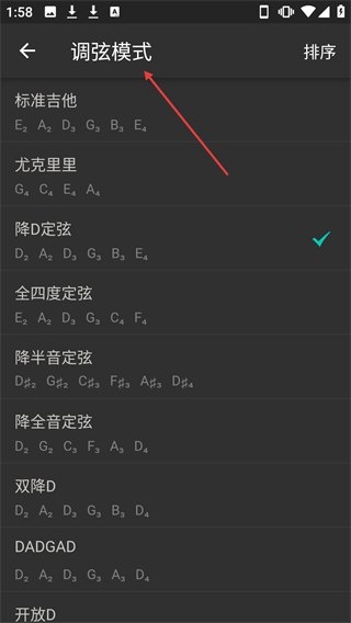 4、进入“调弦模式”列表页面,挑选所需的调弦模式。
