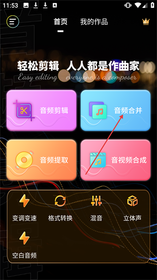 1打开音频剪辑工具后,在主界面找到并点击用于将多段音频整合的功能入口,即可启动音频合并的操作流程。