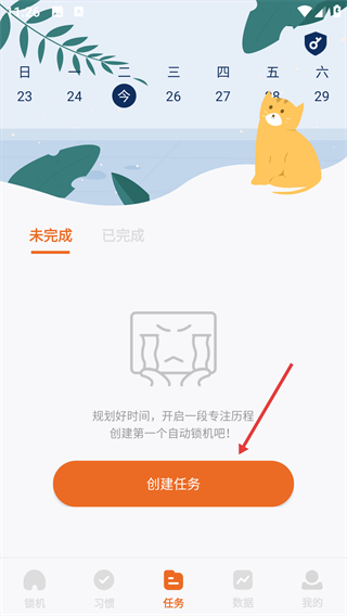 2、进入任务页面,点击橙色【创建任务】按钮。