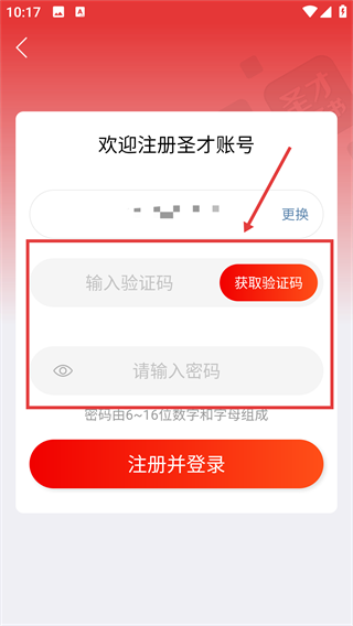4、填入验证码,并设定满足要求的密码,操作完毕后点击【注册并登录】,这样就能完成账号注册。