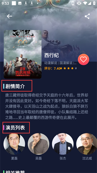 4、于《西行纪》的详情页面,能够查看【剧情简介】【演员列表】等相关信息。