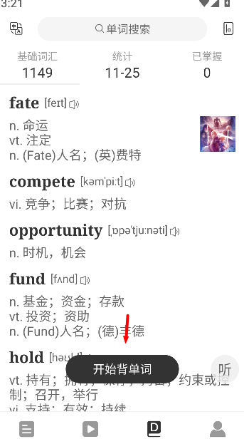 1. 进入首页,点击“开始背单词”,即可直接进入单词学习页面。