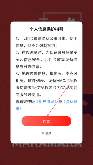 1. 阅读【个人信息保护引】的相关内容后,点击【同意】按钮,便能进入应用的主界面。