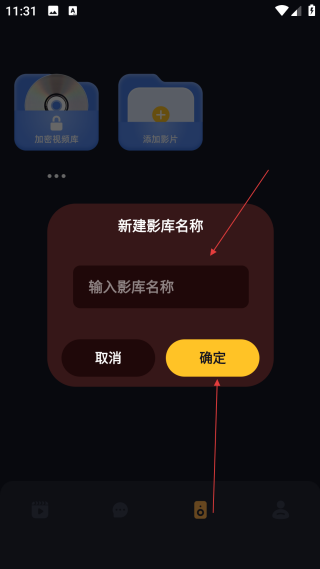 3、于新建影库的弹窗中,在【输入框填写名称】,接着点击【确定】,即可完成影库的创建。