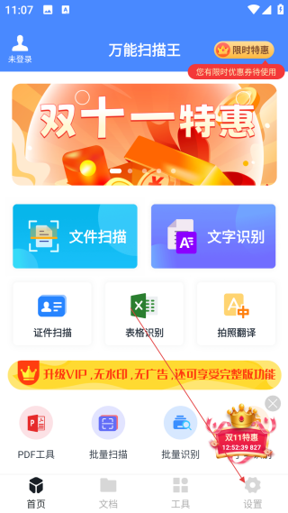 1. 于万能扫描王首页,轻点底部的【设置】,即可进入对应的功能配置页面。