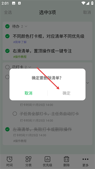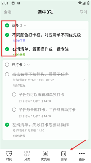 3、选中需要删除的任务,确认勾选无误后,点击底部的“删除”按钮。