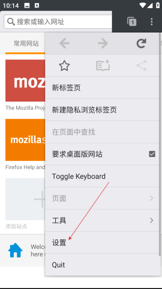 2. 于弹出的菜单里,点击【设置】选项,从而进入浏览器的设置页面。