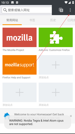 1. 在浏览器的首页位置,点击位于右上角的【三点图标】,从而打开功能操作菜单。