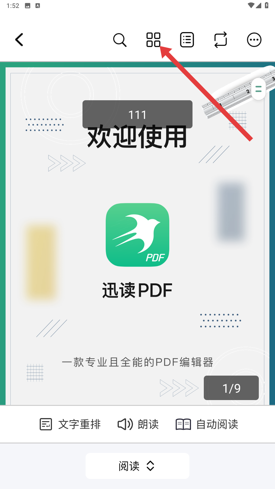 2进入阅读页面后,点击顶部那个由小方块组成的图标,就能一次性浏览到文档里所有页面的缩小版预览图了。