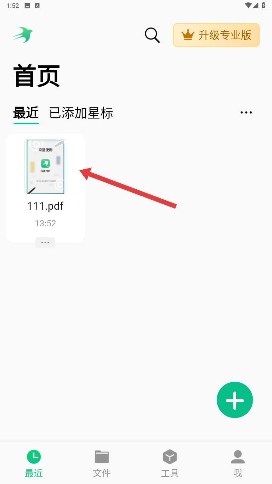 1启动迅读PDF应用后,在首页的“最近”板块里找到目标PDF文档并点击,即可跳转至该文件的阅读操作界面。