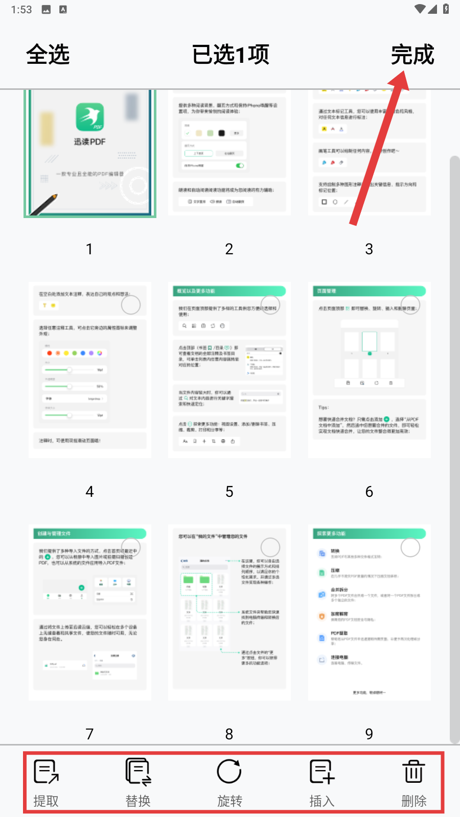 4、选好需要编辑的页面后,借助底部的【提取】等功能,就可以对PDF内容进行编辑修改了。