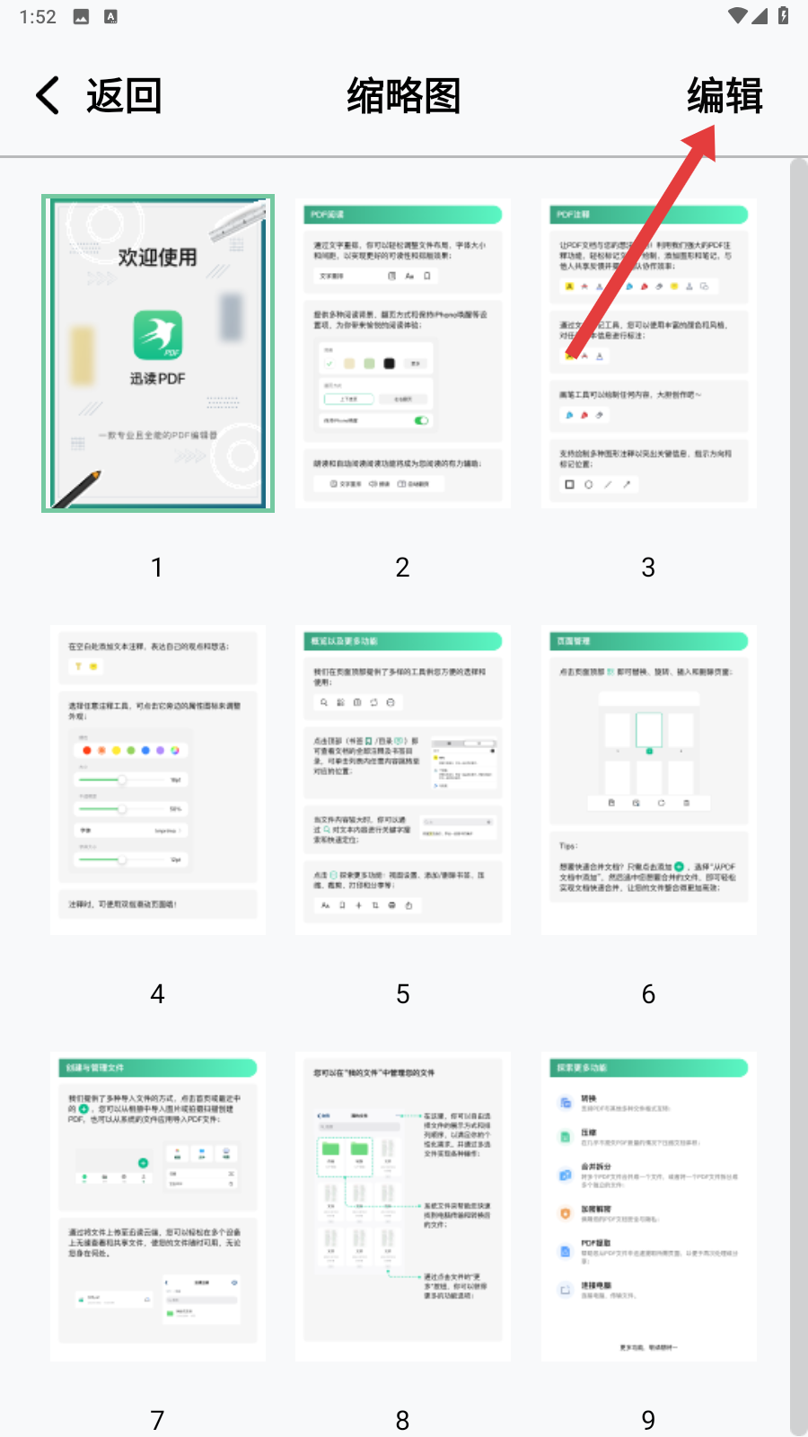 3、进入缩略图界面后,点击右上角的【编辑】按钮,即可为后续修改内容做好准备。
