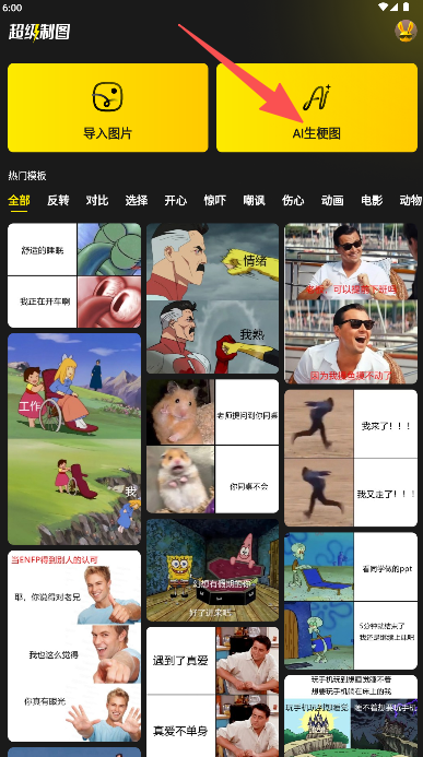 1. 在首页找到“AI生梗图”功能并点击,从而进入创作界面。