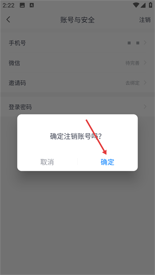 4在弹出的确认窗口中点击“确定”选项,即可完成账号的注销流程。