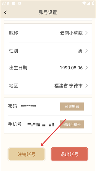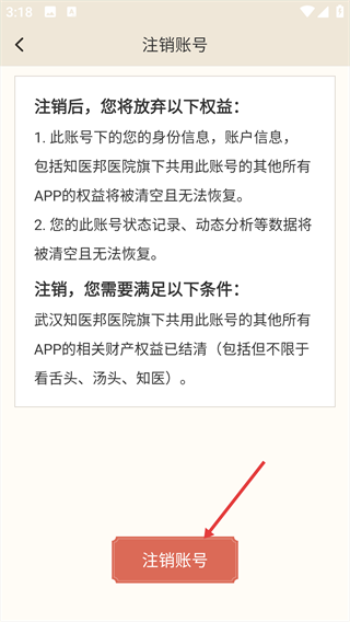 3、寻找到【注销账号】这一选项,然后点击它,从而进入到注销流程的前置确认界面。