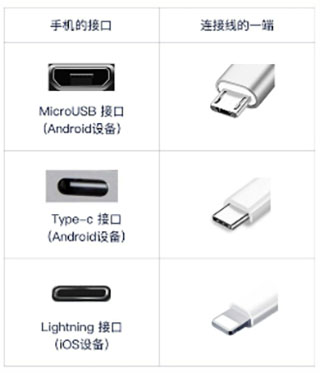 2接着准备一根数据线,用于连接手机与钢琴,该数据线的接口样式可参考下方图示。