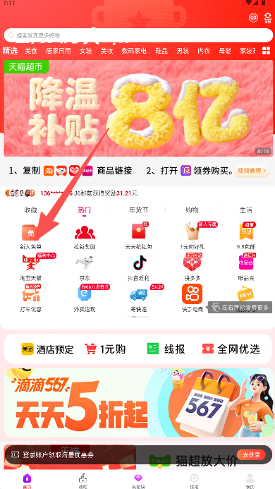 1. 于首页点击顶部的“新人免单”活动入口,从而进入活动页面。