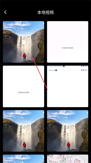 3、获得权限后,进入本地视频页面,点击目标视频(例如瀑布画面的视频),就能进入该视频的播放页面。