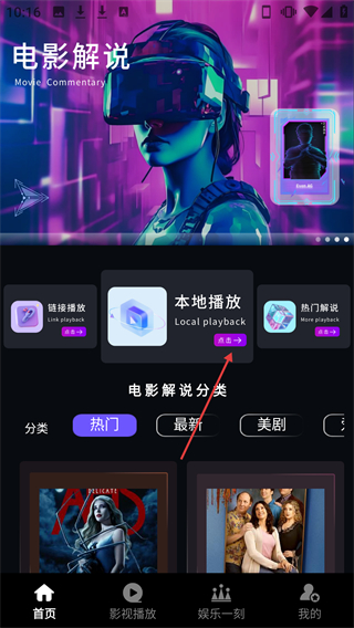 1. 当在电影解说页面点击【本地播放】选项时,会弹出应用的存储权限请求弹窗。
