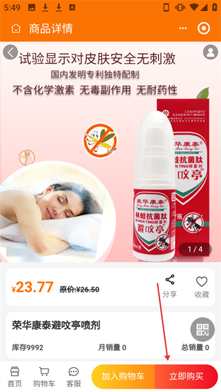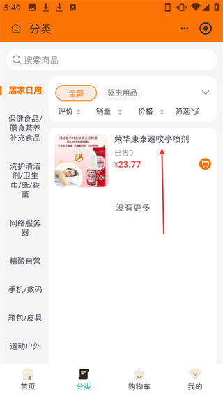 2、于分类页面,点击【荣华康泰避咬亭喷剂】所对应的商品卡片,即可进入该商品的详情页面。