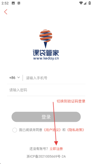 2、在登录页,点击【立即注册】,进入课袋管家的新用户注册页面。