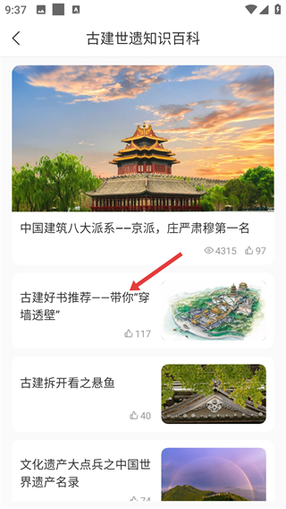 3在【古建世遗知识百科】板块里,若发现感兴趣的内容,点击进入就能获取相关古建筑书籍的推荐,助力你更深入地探究古建筑的精妙之处。