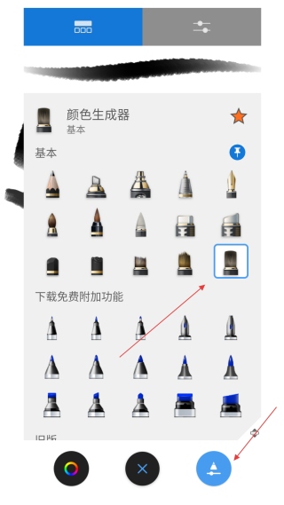 1. 轻点【顶部画笔工具图标】,开启画笔选择的功能菜单界面。