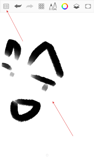 3、选取已选中的画笔于画布之上【着手绘制】,创作结束后,点击【菜单】以打开菜单页面。