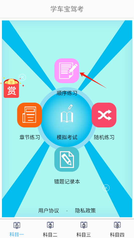 1、打开,可在科目一页面,点击顺序练习。
