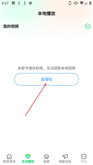 2. 于本地播放页面点击【去授权】按钮,便能获取存储权限,从而得以访问本地视频。