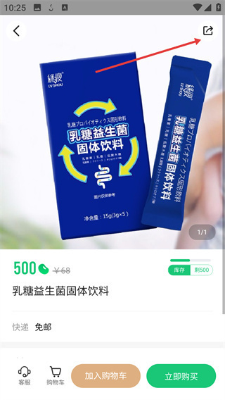 3、于商品详情页面,点击页面右上角的分享图标,随即弹出分享渠道选择菜单。