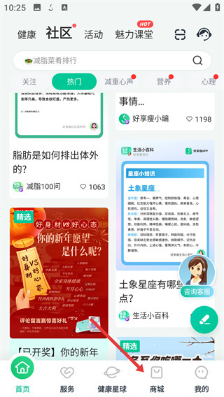 1. 来到减肥宝典中心,于此处查看平台提供的减肥知识。