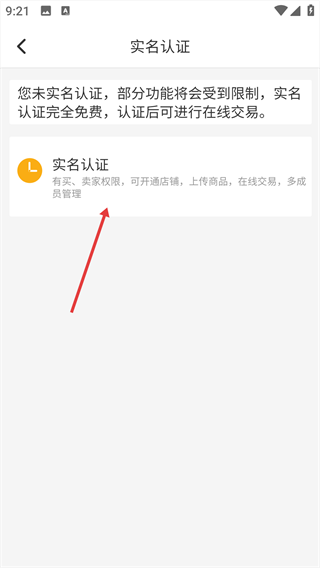 3、进入【实名认证】页面,点击【实名认证】。