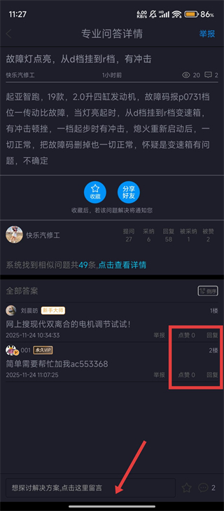 【问问题】遇到汽修难题,可在专业问答中免费提问,众多大师在线为你排忧解难、答疑解惑。