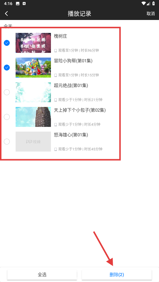 4在播放记录列表中,先选中需要移除的条目,接着点击删除按钮,即可完成记录的清除。