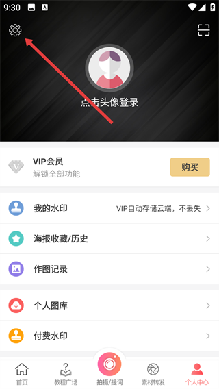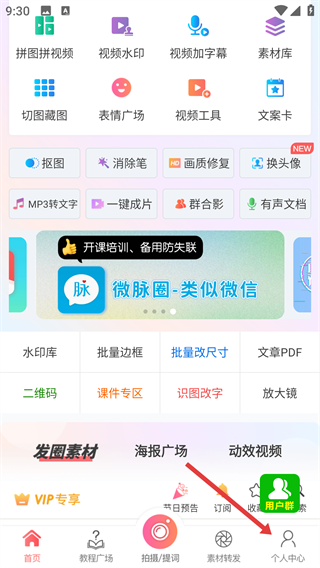 1、启动微脉水印相机应用,点击底部的【个人中心】按钮进入相应页面即可。