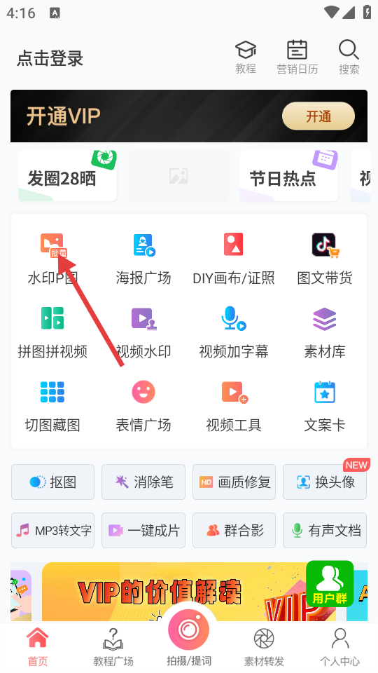 1、首先进入首页,找到并点击【水印P图】的功能图标,即可进入图片选择页面。
