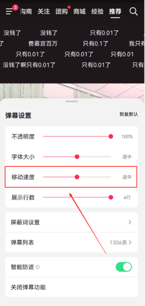 4、滑动设置条来调节弹幕的移动速度,让观看体验能契合个人的喜好。