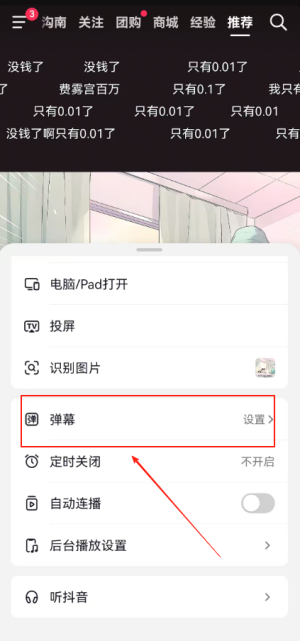 3、选择“弹幕”选项,以便对屏幕上的评论进行管理和调整。