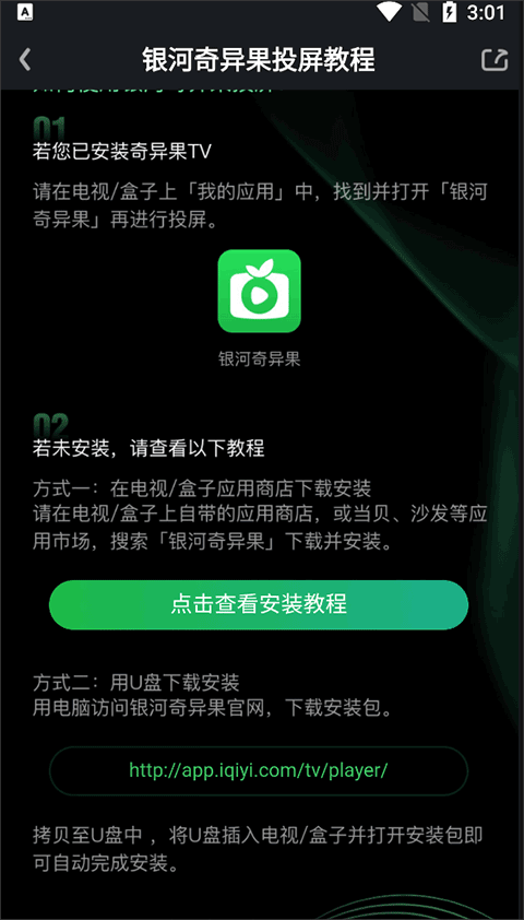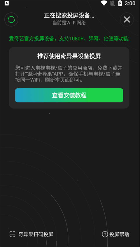 3、在这里就可以进行投屏了,投屏方式有扫码、默认的搜索发现。