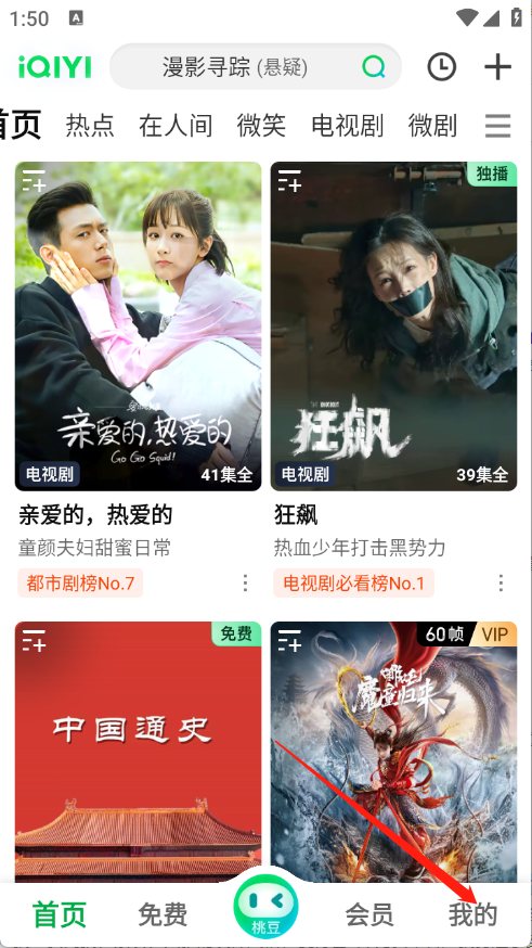 1、进入爱奇艺首页之后点击点击右下方“我的”。
