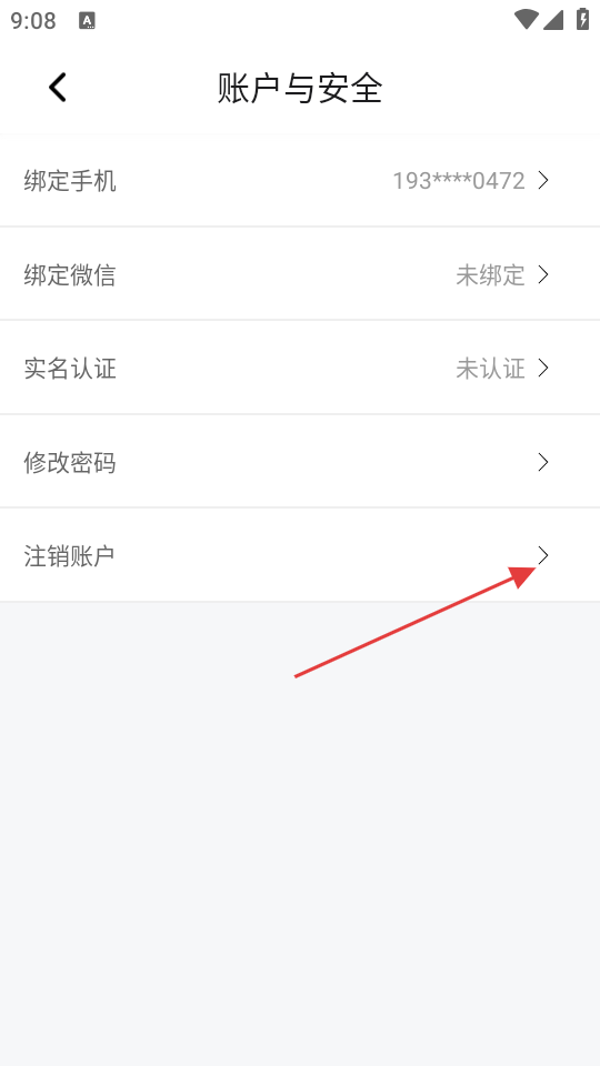 3、在账户与安全页面里,点击【注销账户】选项,弹出注销账号提示框。