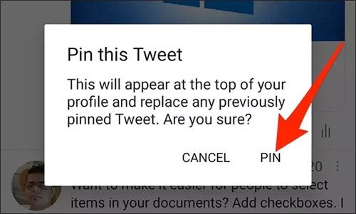 4、在手机屏幕底部弹出的菜单里,点击“Pin to profile”选项。