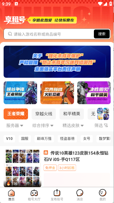 享租号,专门为玩家打造的游戏交易平台,王者荣耀、蛋仔派对以及和平精英等游戏类型都有,所有的账号都是正版且经过平台严格的检测才可以发布的,专业的客服为用户解答疑惑,玩家都可以购买到自己心仪的账号。