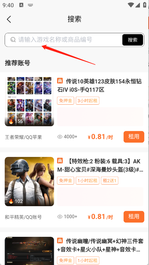 2、首页为玩家推荐了很多热门的游戏账号资源。