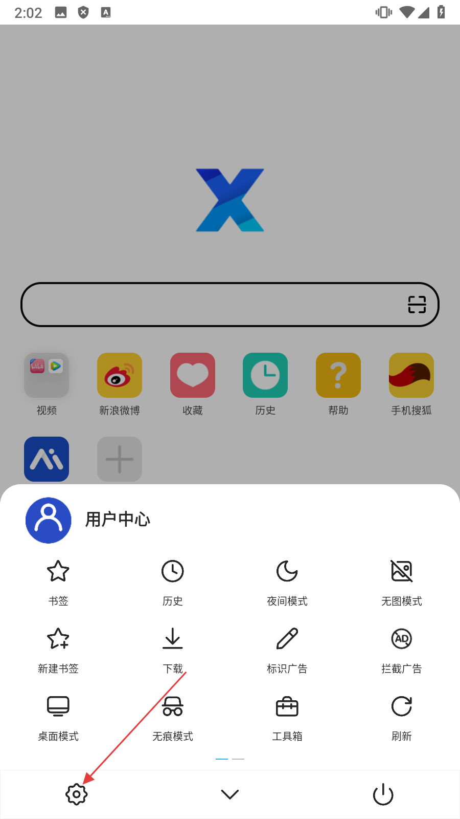 2、在用户中心菜单中点击【设置图标】,进入设置页面。